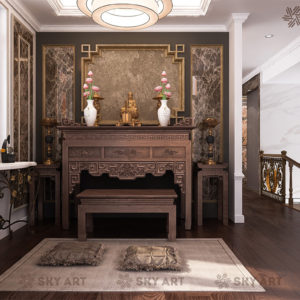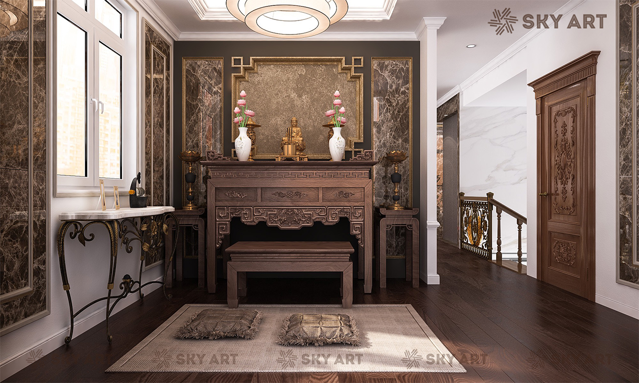 Công năng: 1 phòng khách, 1 phòng bếp, 2 phòng ngủ, 1 phòng thờ.
