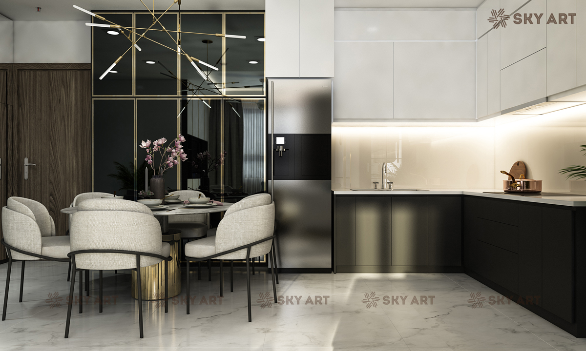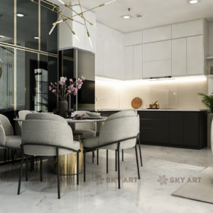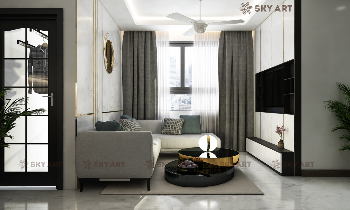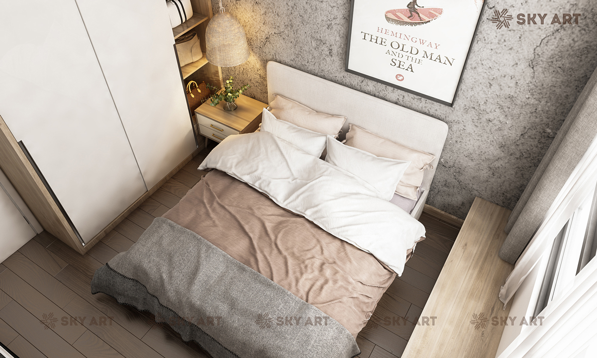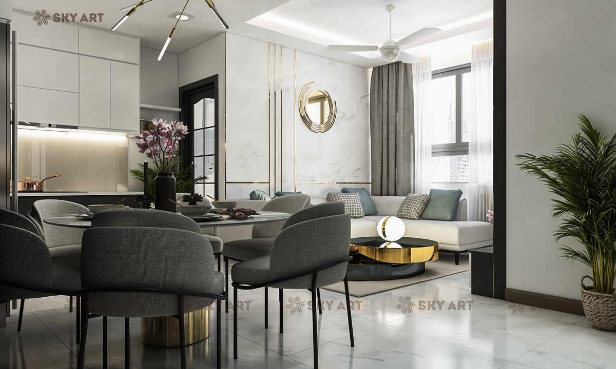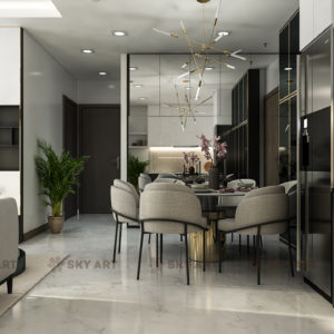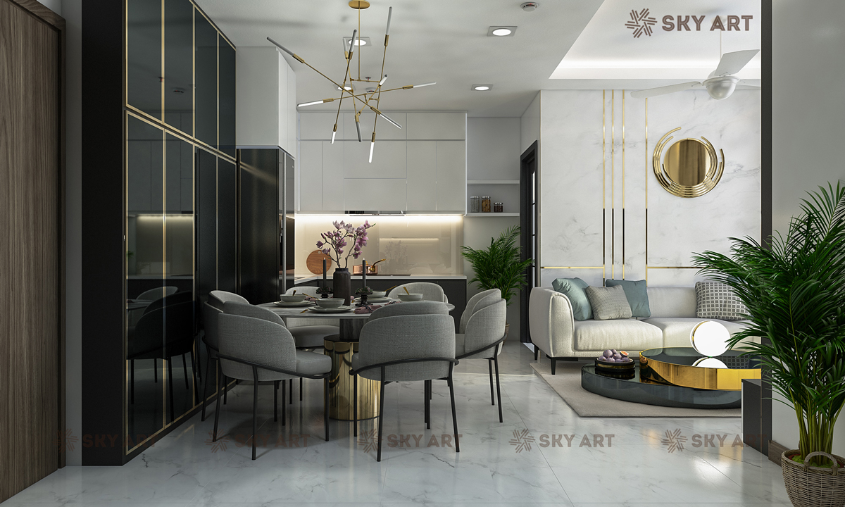 Công năng: 1 phòng khách, 1 bếp, 2 phòng ngủ.