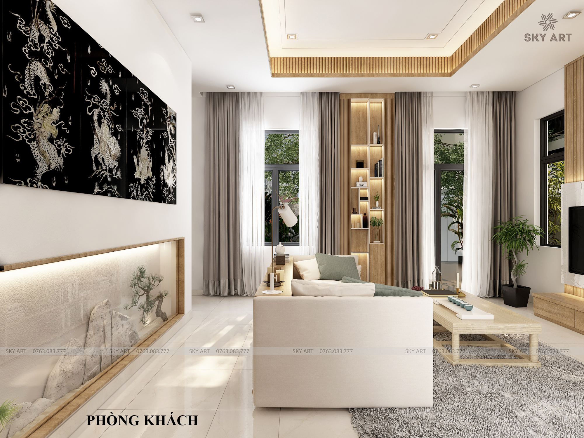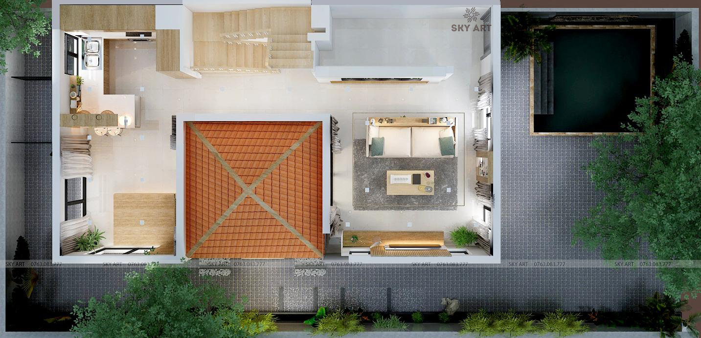 – Thiết kế & thi công: Sky Art – Hạng mục: Hoàn thiện phần thô + nội thất.